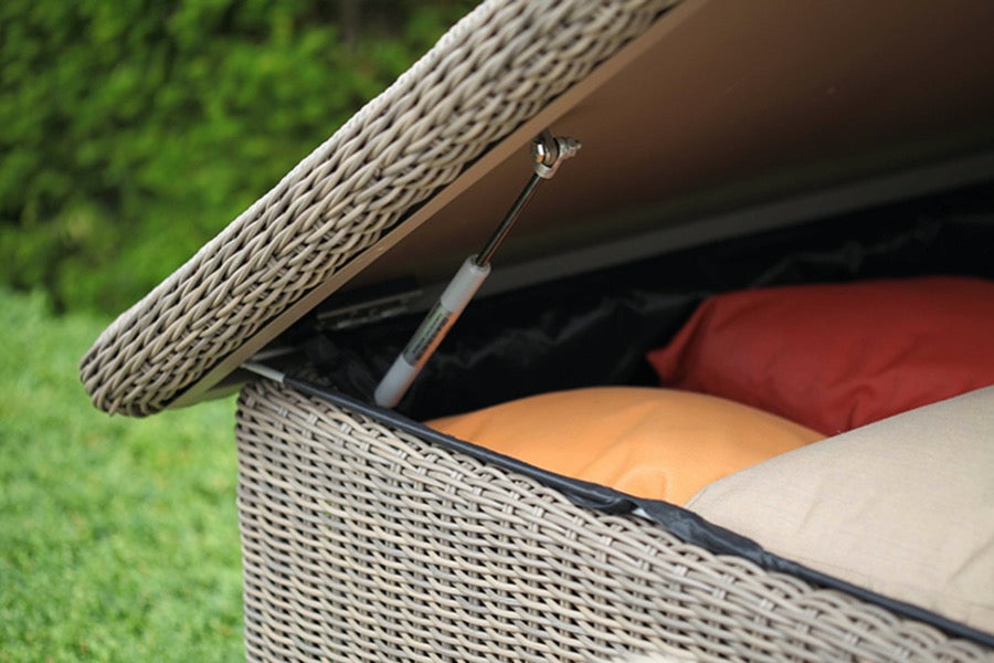 This rattan Cushion Storage Box looks fantastic alongside outdoor furniture from our Kensington Collection.