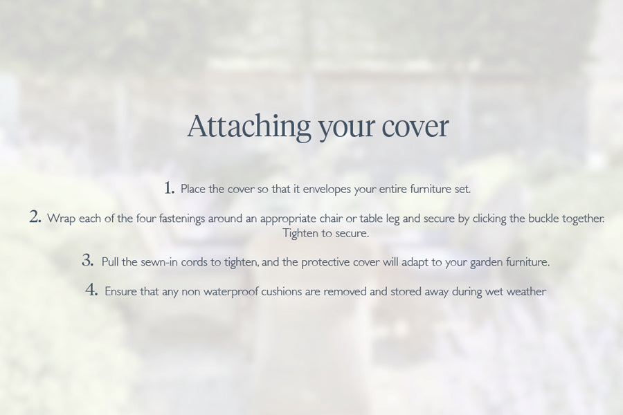High quality, heavy-duty, TPU coated polyester fabric. Abrasion and puncture-resistant. Complete with corner reinforcements, secure buckles and tight cord fastenings. Air vents incorporated to reduce condensation and prevent the build-up of damp and mould.. Suitable for dining sets. -