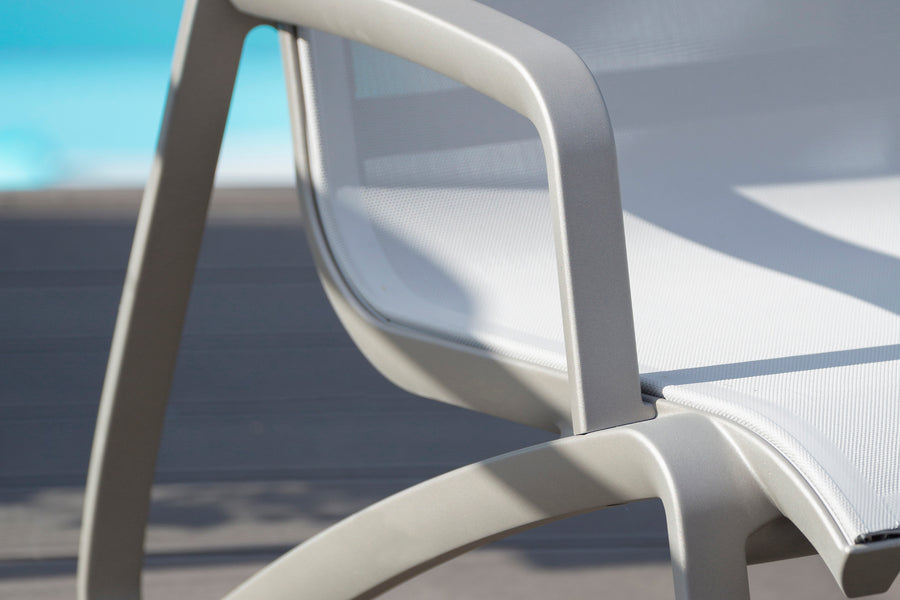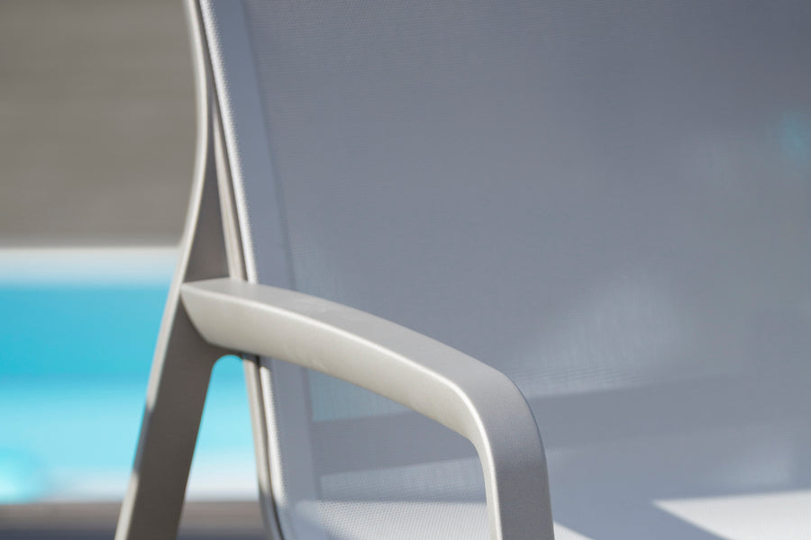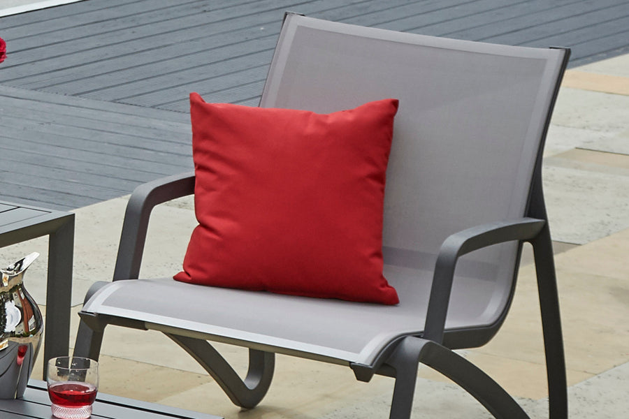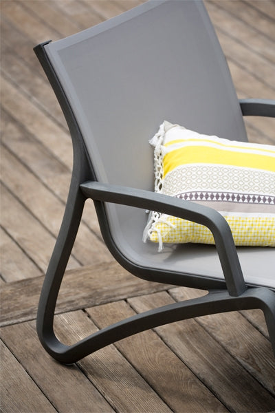 Created by expert French furniture-makers Grosfillex. Robust aluminium structure. Luxurious and comfortable resin seat without the need for any cushions. Distinctly contemporary shade of Volcano Grey. -