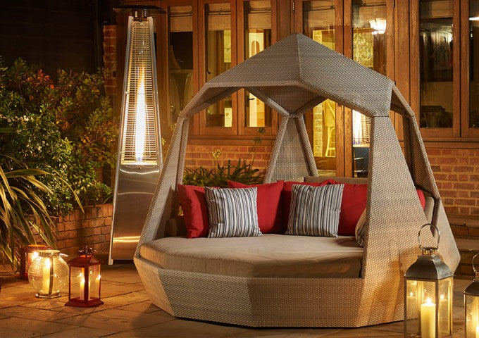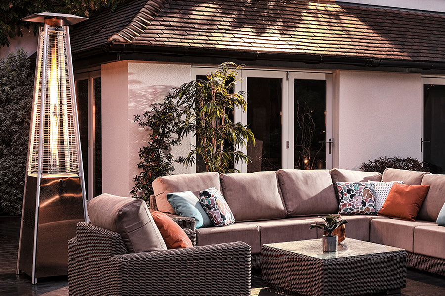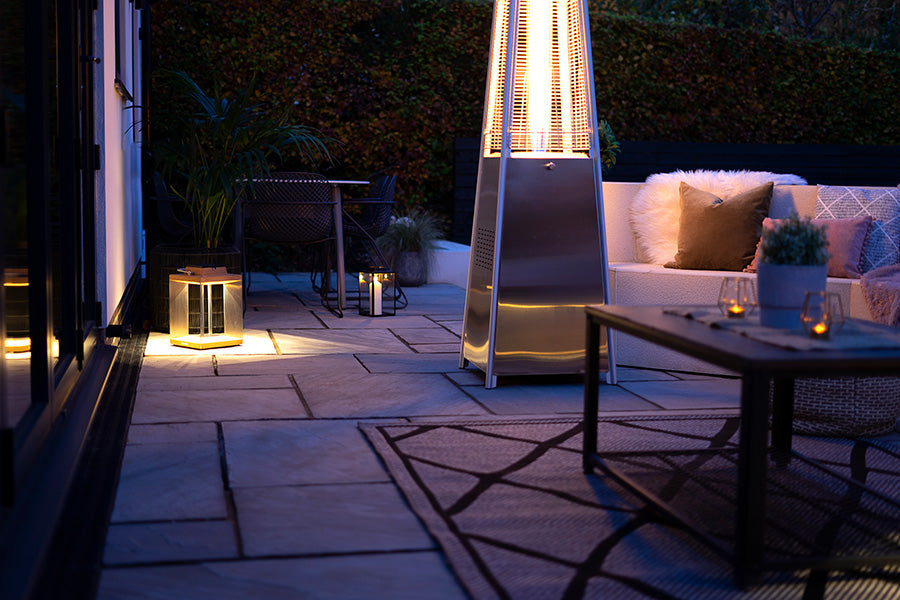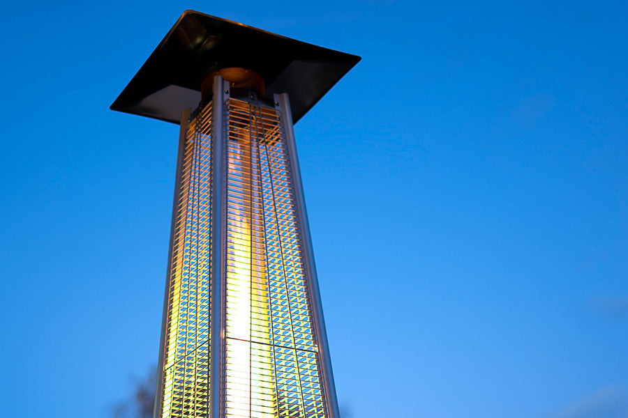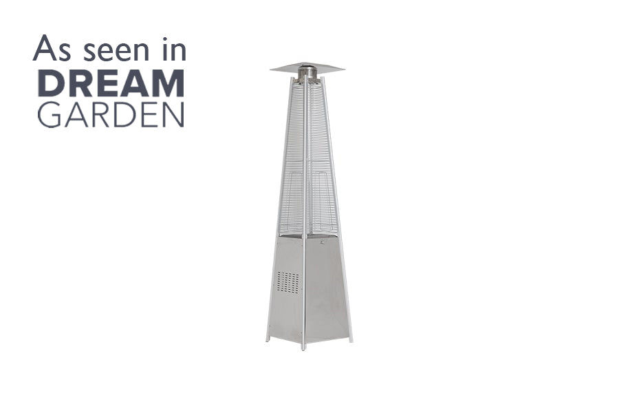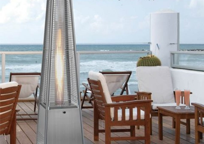 Striking, modern design. Can run on Propane or Butane. Small wheels allow for ease of movement. -